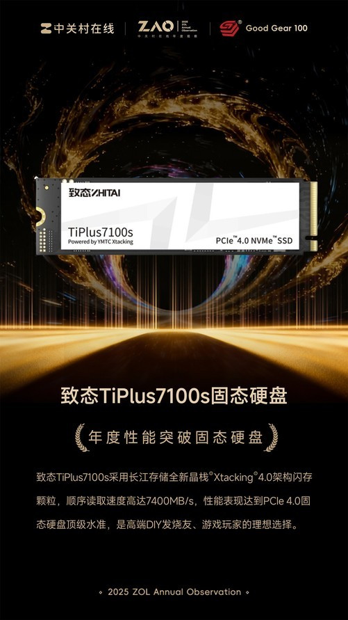2025年度百大优秀科技产品:年度性能突破固态硬盘-致态TiPlus7100s固态硬盘