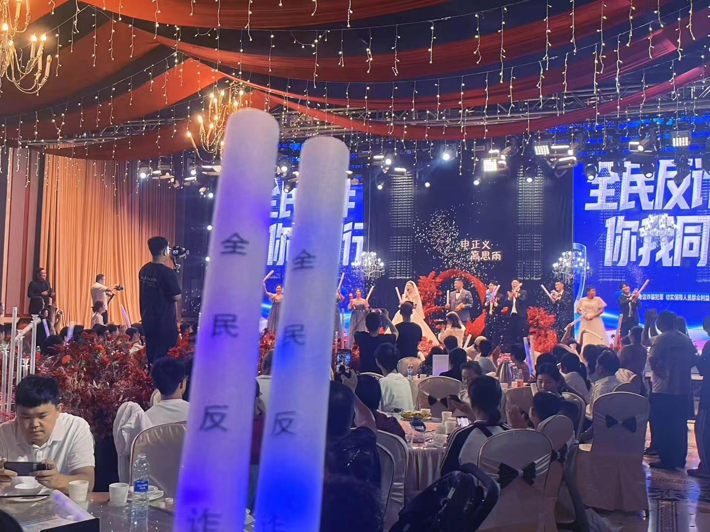 更特别的是,这首歌的“首演”舞台是她自己的婚礼。面对数百位亲友,她将反诈知识融入喜庆氛围,让浪漫婚礼瞬间变身“反诈小课堂”。