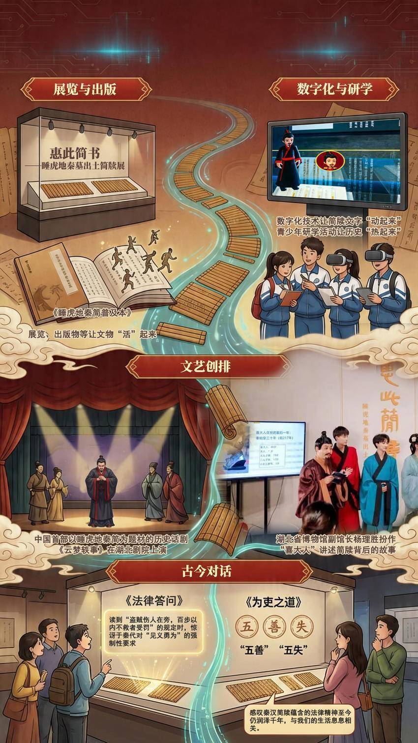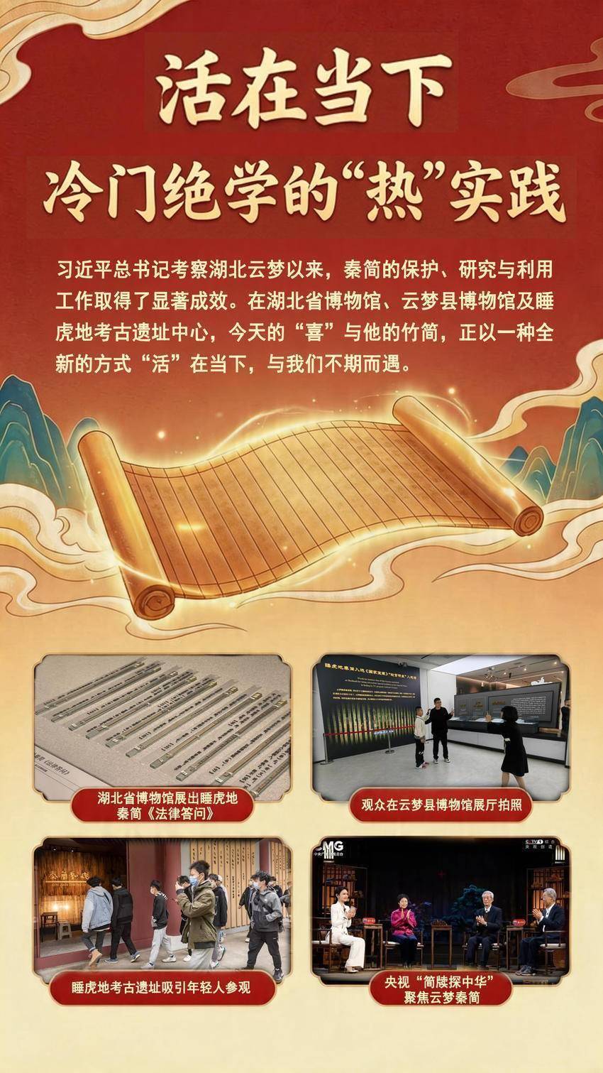 如今,以云梦睡虎地秦简为代表的湖北简牍“活”了、“火”了。据不完全统计,去年全网发布与湖北简牍相关信息共8.7万条,引发网友互动约1.05亿次,传播量达184亿次。