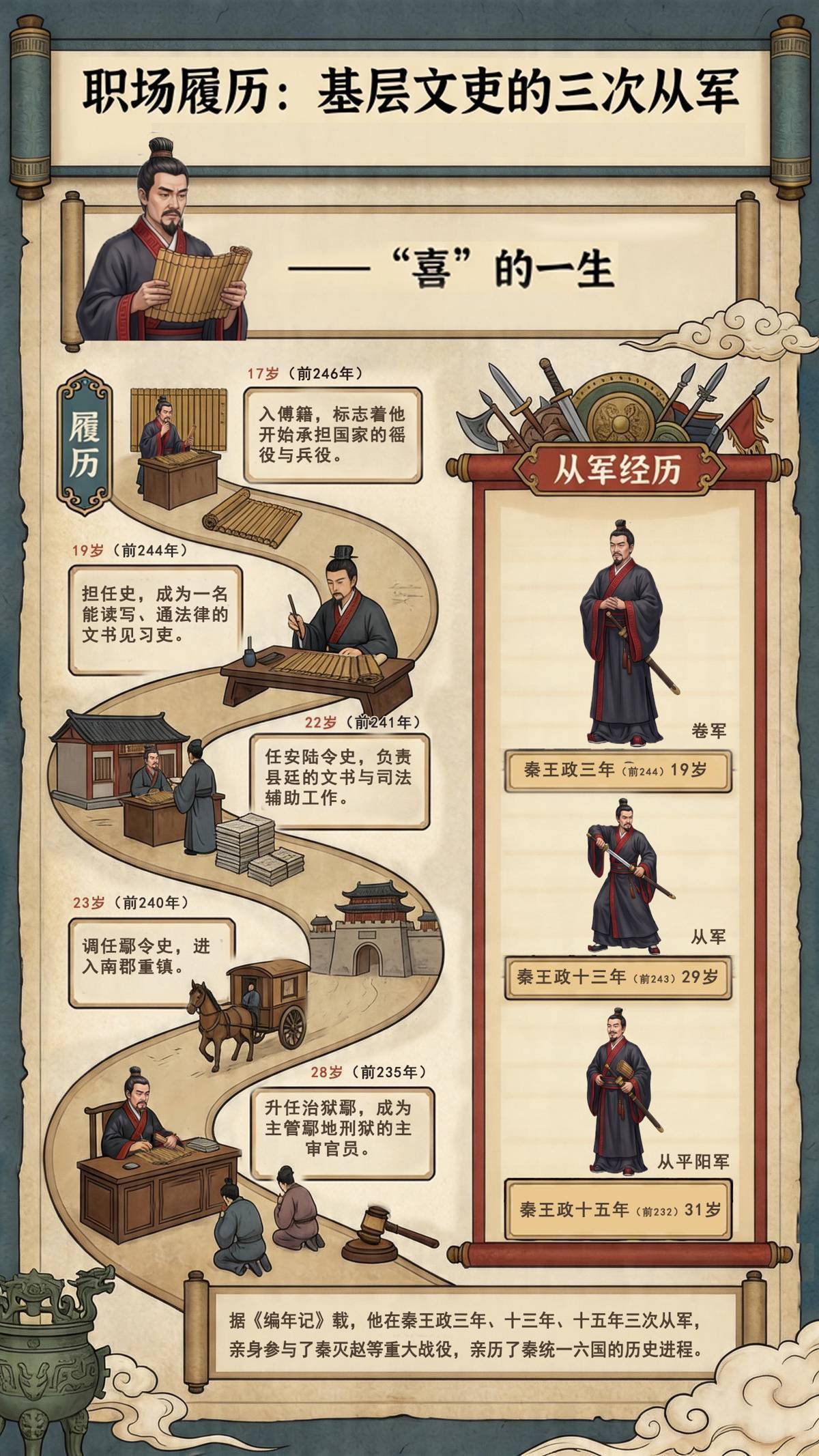 睡虎地秦简的主人“喜”,用他毕生的“工作笔记”和家族记忆,为我们推开了一扇通往两千多年前的大门。让我们循着“喜”的足迹,探寻“喜”从何来,又去往何方。