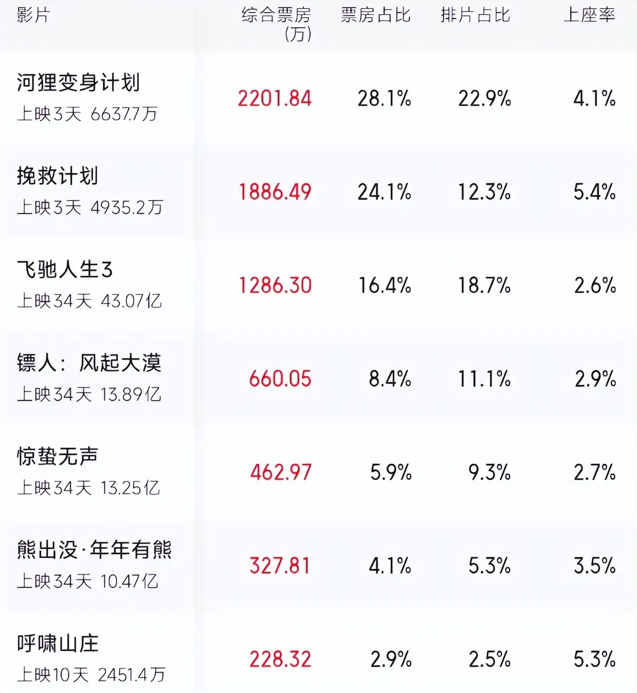 北美首周1.204亿美元,中国内地首周3天票房6640万元,单日票房已经超过《镖人》和《飞驰人生3》,也碾压了同档期的新作《挽救计划》。