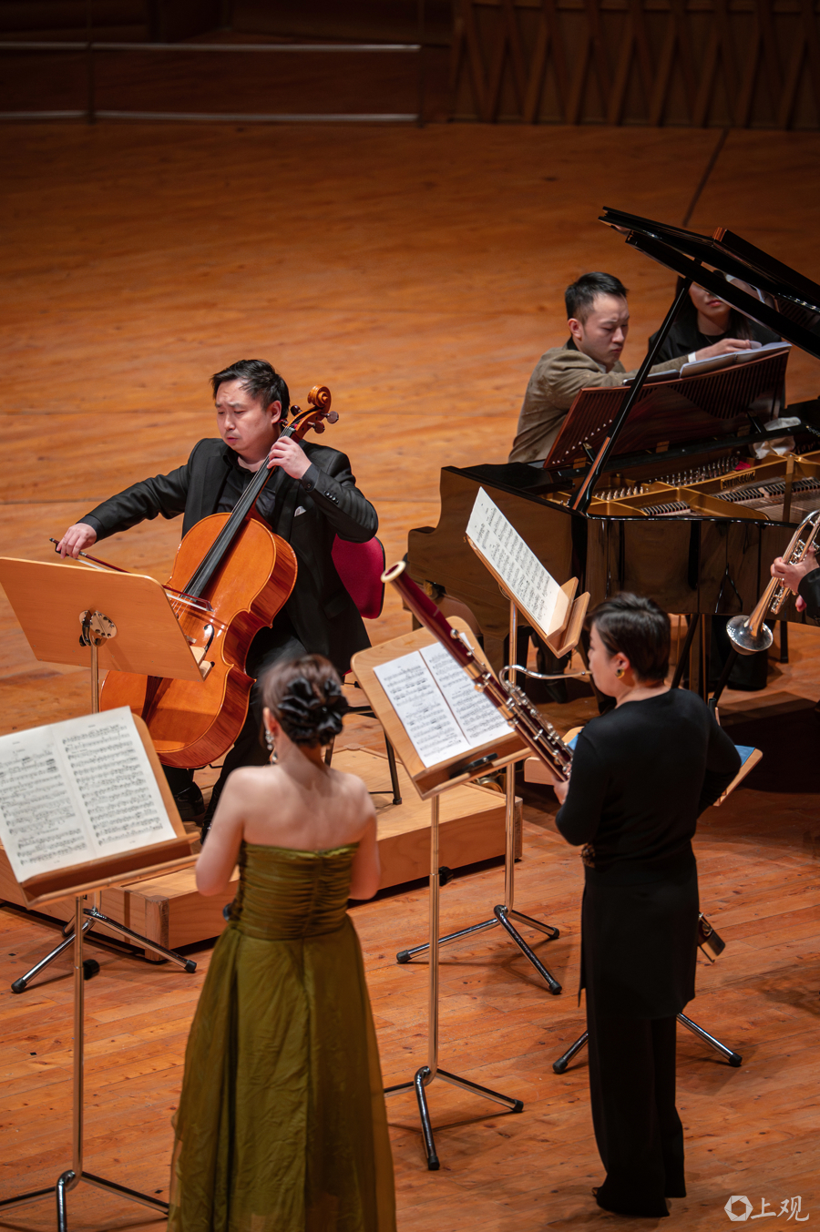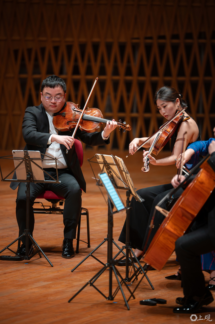 4月21日晚,左岸音乐节在上交音乐厅闭幕,小提琴家宁峰与柏林爱乐中提琴首席梅第扬领衔,吕安琪、赵静、谢明等演奏家携手上海交响乐团,以三部风格迥异却意境相融的室内乐杰作,为音乐节画上句号。